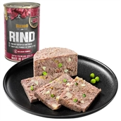 Fuldfoder dåsemad med indhold af oksekød og indmad i form af hjerte, lunge, mave, lever, nyre, yver.